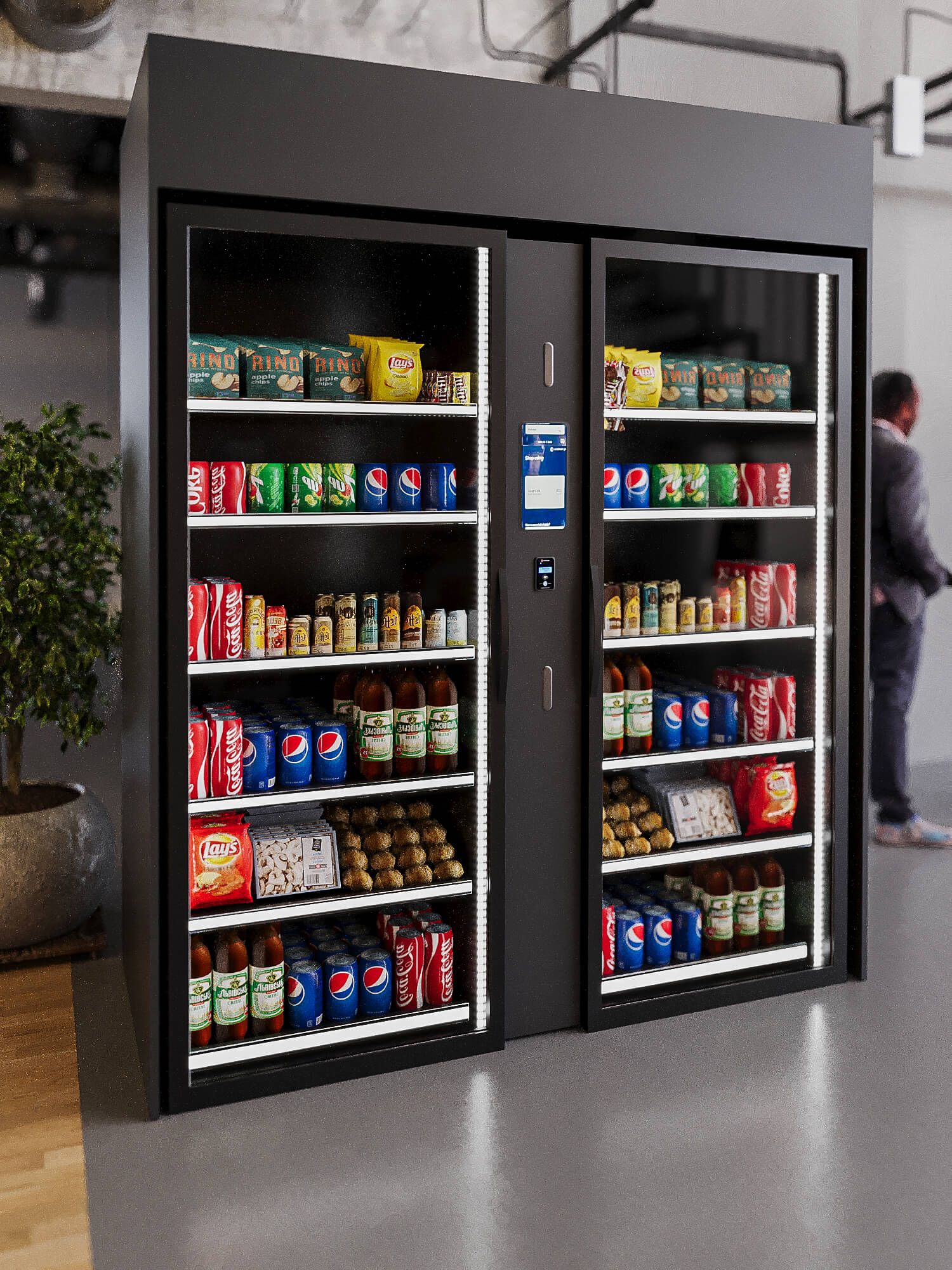 Fit more, sell more. With more capacity and therefore more merchandising possibilities, you can drive sales with all new product offerings. Includes 6 shelves, 24 trays, 94 slots for a single unit. Accepts credit/debit cards, campus cards, and mobile wallets. Remote management with real-time inventory and reporting. Step-by-step calibration and restocking guidance. Modular set-up from 1 cabinet and up to 4 per POS